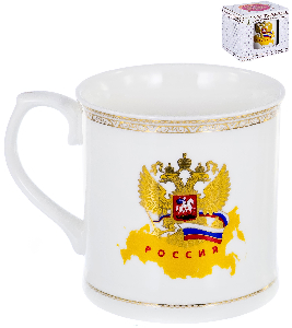 Кружка с национальной символикой Россия. Кружка выполнена из высококачественного фарфора нового поколения, благодаря современным технологиям фарфор New Bone China не уступает традиционному костяному фарфору в прозрачности, белизне и прочности, но при этом гораздо экологичнее в производстве. Рекомендуется ручная мойка. Нельзя разогревать в СВЧ-печи. Поставляется в подарочной упаковке.