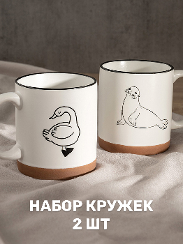 Набор кружек 2шт 340мл DE'NASTIA Animal Котик/Гусь белый/коричневый фарфор