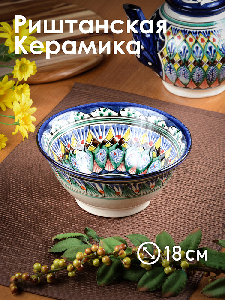 Пиала (коса) 19см RISHTON KULOLCHILIC рисунок мехроб синий Риштанская керамика