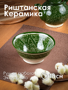 Пиала (коса) 19см ROSHIDON CERAMIK рисунок гравюра green керамика