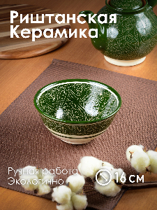 Пиала (коса) 17см ROSHIDON CERAMIK рисунок гравюра green керамика