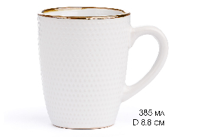 Кружка 385мл LUCKY Точки металлическая кайма белый керамика