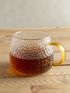 Кружка 450мл LUCKY золотая ручка фактурное боросиликатное жаропрочное стекло