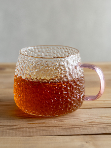 Кружка 450мл LUCKY розовая ручка фактурное боросиликатное жаропрочное стекло