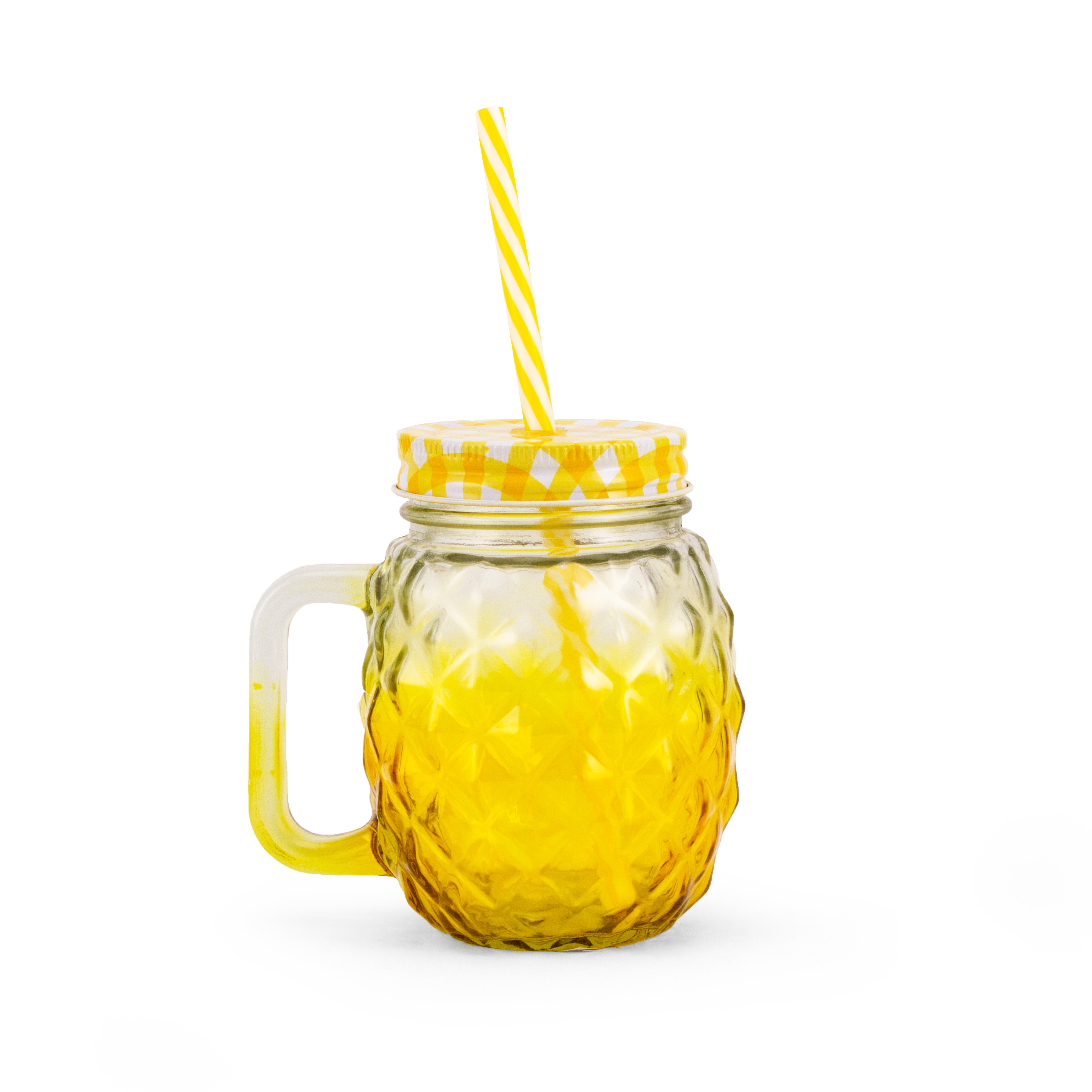 Кружка-банка с трубочкой 480мл Ананас стекло