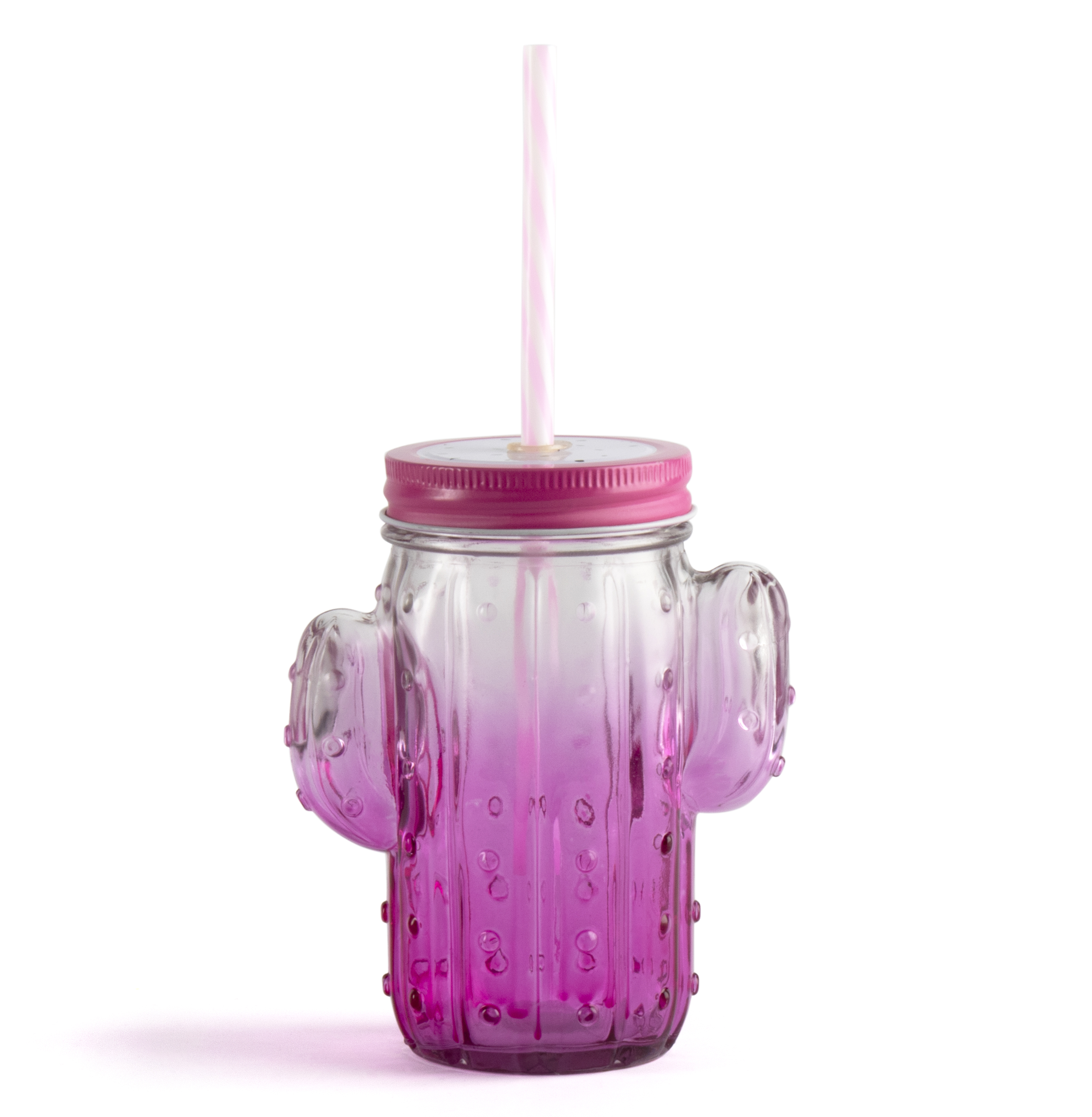 Кружка-банка с трубочкой 480мл Кактус стекло
