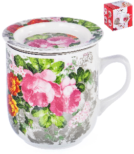 Кружка 350мл заварочная фарфор с металлическим ситом Цветение подарочная упаковка Флора Olaff 124-01122