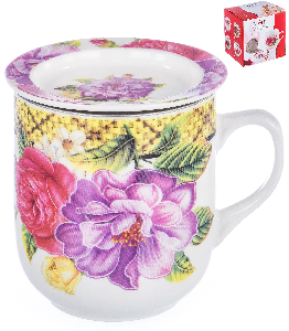 Кружка заварочная 350мл OLAFF Корзина цветов Флора металлическое сито подарочная упаковка фарфор