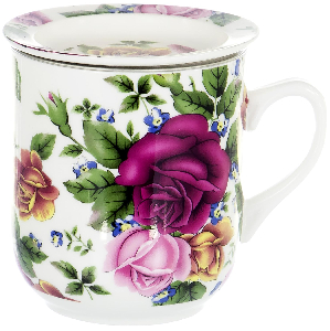 Кружка 350мл заварочная фарфор с металлическимситом Роза подарочная упаковка Флора Olaff CM-MSCM-008