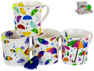 Кол-во предметов в наборе:2шт, Состав набора:кружка 300мл + силикон.ситечко, Материал:Фарфор, Декор:Зонты(микс-4 декора), Тип упаковки:подарочная