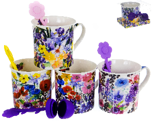Кол-во предметов в наборе:2шт, Состав набора:кружка 300мл с силикон.ситечком, Материал:Фарфор, Декор:Цветы(микс-4 вида), Тип упаковки:подарочная