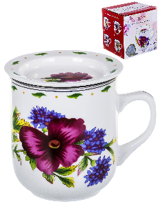 Кружка заварочная 350мл Olaff Флора с металлическим ситом подарочная упаковка фарфор 124-01151