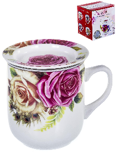 Кружка заварочная 350мл Olaff Флора с металлическим ситом подарочная упаковка фарфор 124-01152