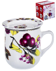 Кружка заварочная 350мл Olaff Флора с металлическим ситом подарочная упаковка фарфор 124-01153