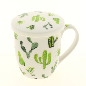 Кружка заварочная Кактус с ситечком и ложкой изготовлена из фарфора нового поколения. Изделие оснащено крышкой и ситечком. Благодаря ситечку вы сможете заваривать чай непосредственно в кружке. Крышка дольше сохранит ваш напиток горячим. Кружка сочетает в себе оригинальный дизайн и функциональность. Благодаря такой кружке пить напитки будет еще вкуснее.