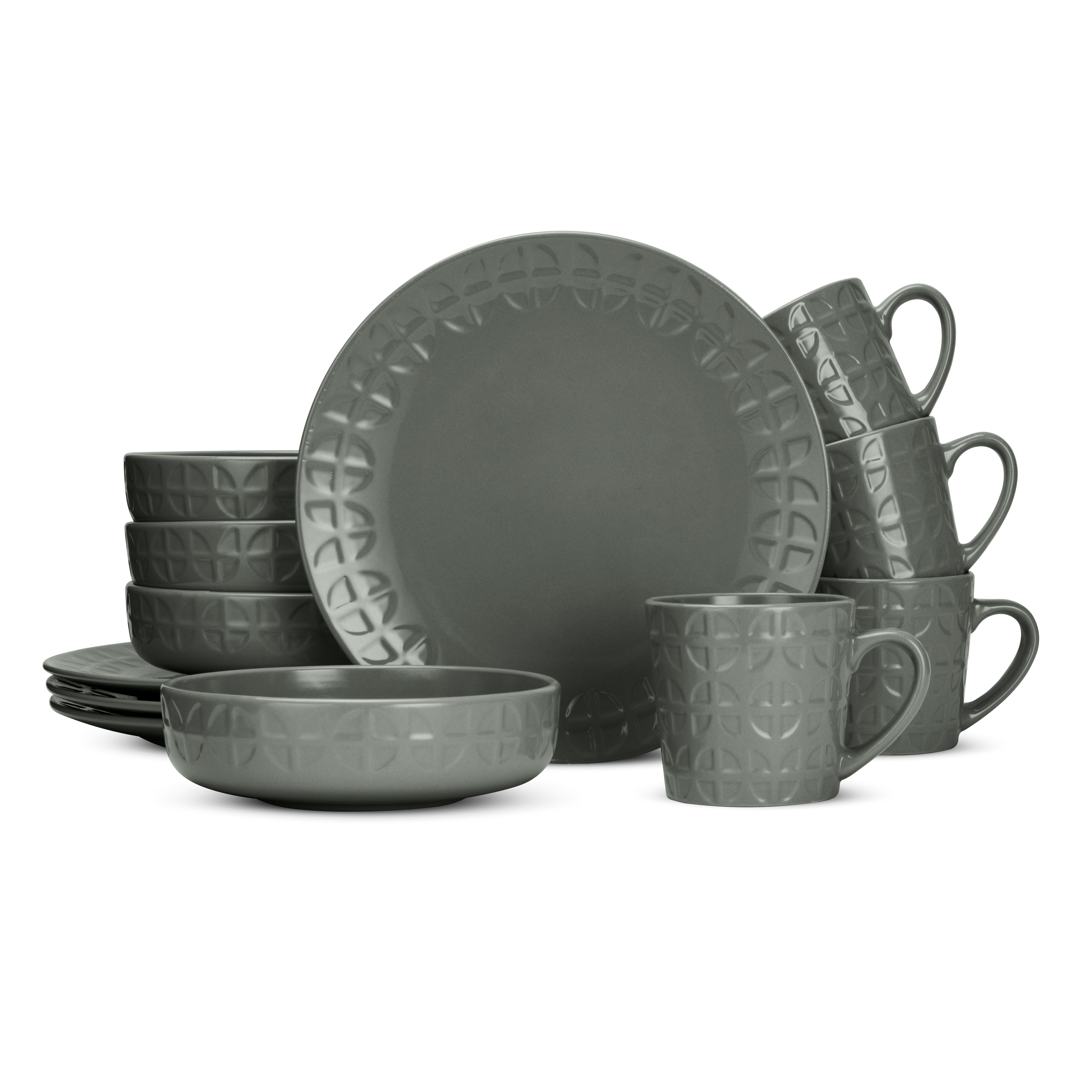 Набор столовой посуды 12 предметов LUCKY рельеф серый керамика