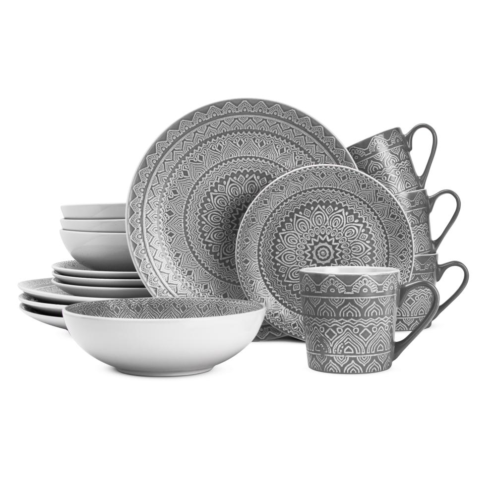 Набор столовой посуды 16 предметов (обеденная 27см-4шт/десертная 20см-4шт/суповая 19см-4шт/кружка 355мл-4шт) керамика BSCJ4621