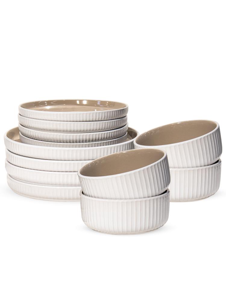 Набор столовой посуды 12 предметов (тарелка обеденная 26см-4шт/тарелка десертная 20см-4шт/салатник 15см-4шт)