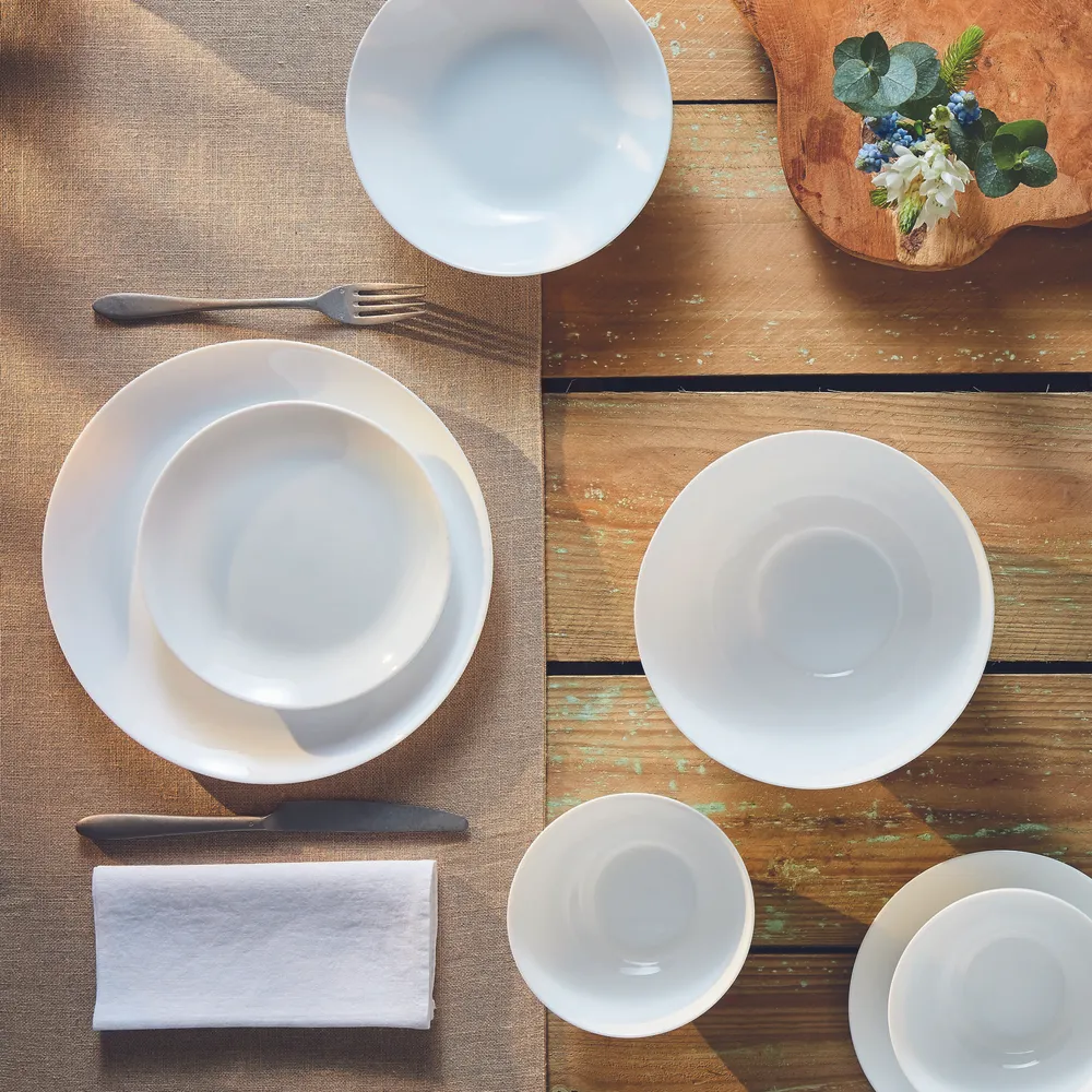 - Белоснежная сервировочная посуда в минималистичном стиле поможет сделать сервировку стола утонченной и благородной. Столовый сервиз создаст изысканную обстановку как за праздничным столом, так и в обычный будний день.