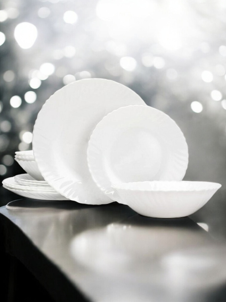 Изготовленный из высококачественной стеклокерамики, набор обладает высокой прочностью и долговечностью. Элегантный белый цвет делает его универсальным для любого стиля сервировки.