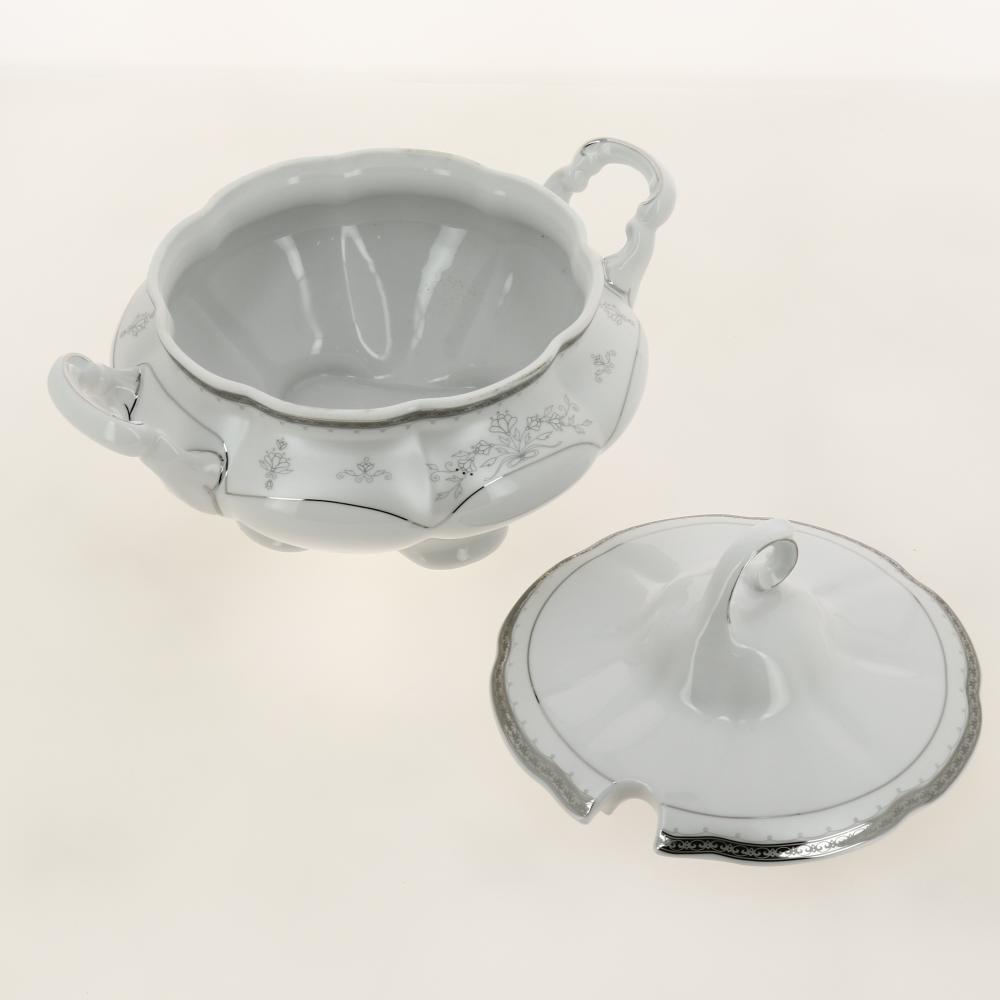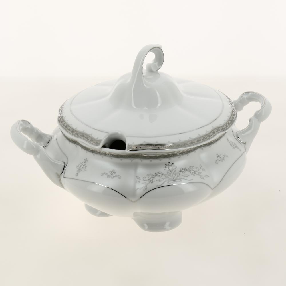 Изящные блюда для сервировки стола, красивые тарелки, блестящие приборы помогают в создании торжественной атмосферы за обеденным столом. Главная особенность данного столового сервиза заключается в его великолепном дизайне, который придется по душе ценителям классического исполнения. Гармоничное сочетание белоснежного фона, золотистой окантовки и декоративного рисунка придает изделиям удивительно роскошный и богатый вид. Сервиз станет настоящим украшением вашей кухни. Поместите его на видное место и вы увидите как преобразится она!