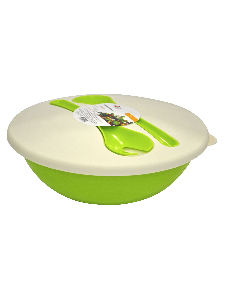 Наслаждайтесь Вашим свежим салатом, ведь в нашем новом салатнике готовить его одно удовольствие. Преимущества: стильный дизайн салатника украсит любой стол и дома, и на природе; с помощью приборов, входящих в комплектацию, Вы легко размешаете Ваш салат; оптимальный объем 3 л подойдет как для большой компании, так и для семейного обеда; плотная крышка сохранит свежесть Ваших блюд. Приборы плотно крепятся на крышку, Вы не потеряете их во время хранения и переноски.