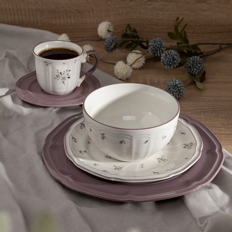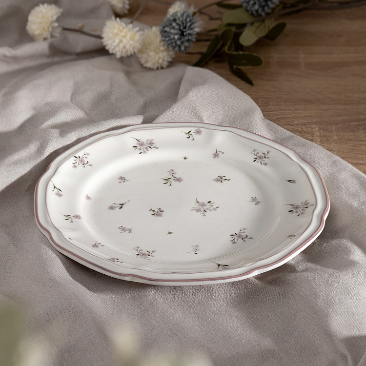 Тарелка десертная 21,8см DE'NASTIA Vintage цветочный принт фиолетовая кайма белый фарфор