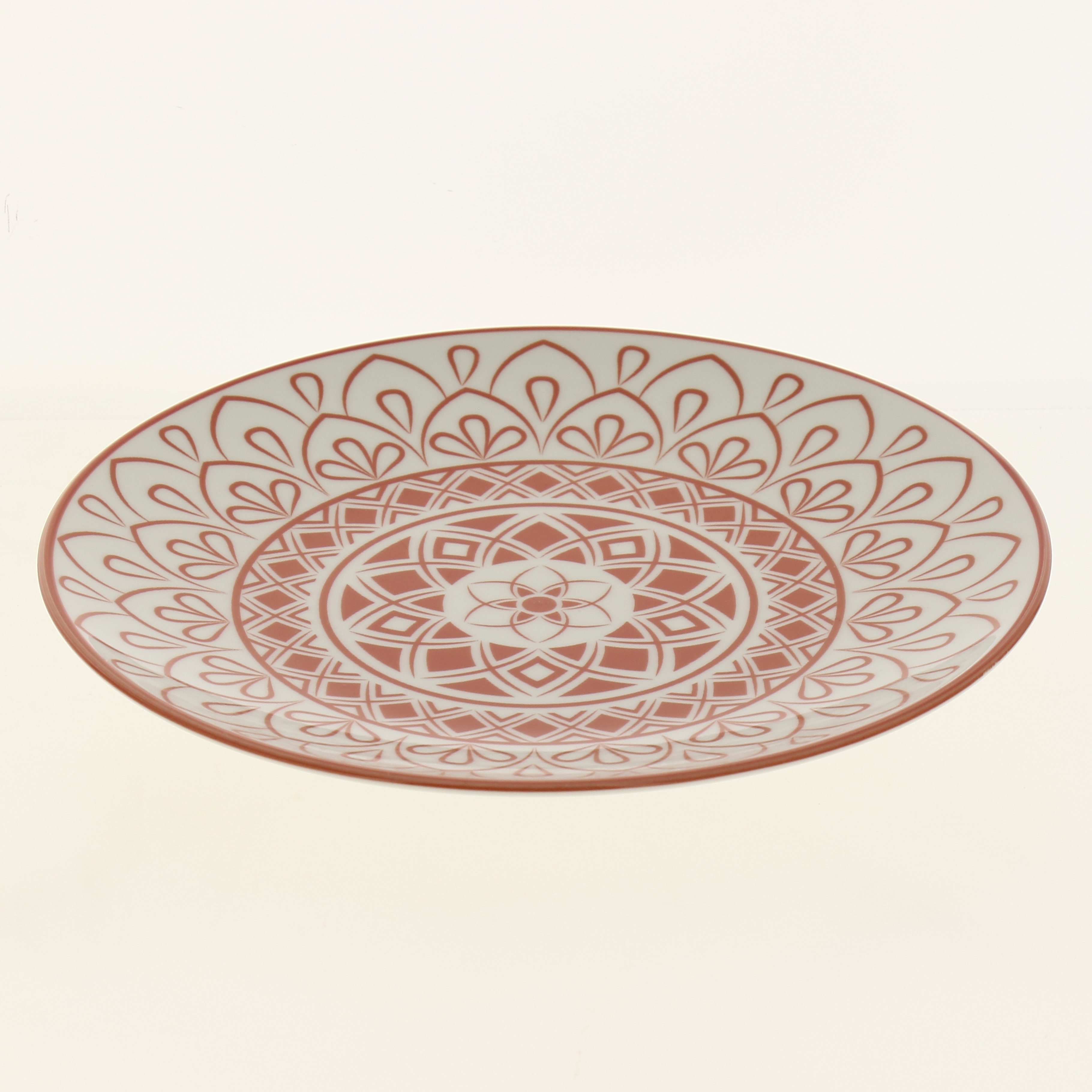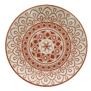 Тарелка Арабеска с красным этническим узором для повседневного использова- ния. Рисунок нанесен методом шелкографии как на внешней, так и на внутренней стороне в технологии подглазурной росписи (на поверхности не образуеются неровностей, по- суда приятна на ощупь); удобная глубокая форма.