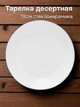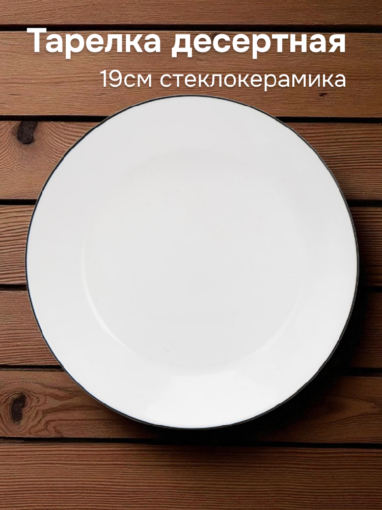 Тарелка десертная 19см белая с черной каймой стеклокерамика
