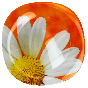 Плоская тарелка необычной формы Paqurette Melon от Luminarc украсит любой стол. Сочетание ярко-оранжевого цвета и крупного принта сцветком ромашки поднимет настроение и напомнит о солнечном лете. Тарелку можно использовать для подачи горячих блюд, холодных закусок на общий стол или как подстановочную тарелку под супницы. Она изготовлена из высококачественного ударопрочного стекла, которое обладает антибактериальными свойствами,не впитывает запахи и очень долговечно. Тарелку можно использовать в микроволновой печи и мыть в посудомоечной машине.