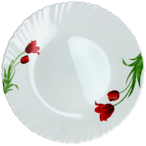 Плоская тарелка Tulip выполнена в современном дизайне и украшена яркими цветочными принтами. Ее можно использовать как для подачи горячих блюд, так и для холодных закусок на общий стол или в качестве подстановочной тарелки под супницы. Тарелка изготовлена известной французской маркой Luminarc из ударопрочного стекла. Она не впитывает запахи, обладает длительным сроком эксплуатации и подходит для использования в микроволновой печи и посудомоечной машине.