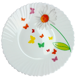 Обеденная тарелка Ромашка от Farforelle украшена изображениями ярких бабочек, летающих над цветком ромашки. Белоснежная тарелка с ярким рисунком украсит стол, и создаст по-летнему радостное и беззаботное настроение. Тарелка изготовлена из качественного ударопрочного стекла, благодаря чему надолго сохранит отличный внешний вид. Ее можно мыть в посудомоечной машине и использовать в микроволновой печи.