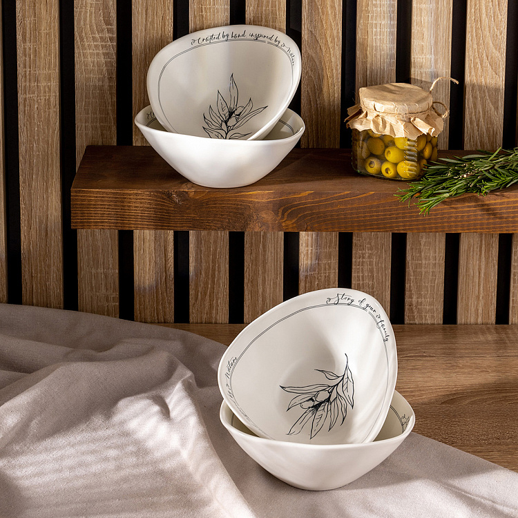 Набор тарелок суповых 4шт 500мл DE'NASTIA Оливки черно-белый фарфор