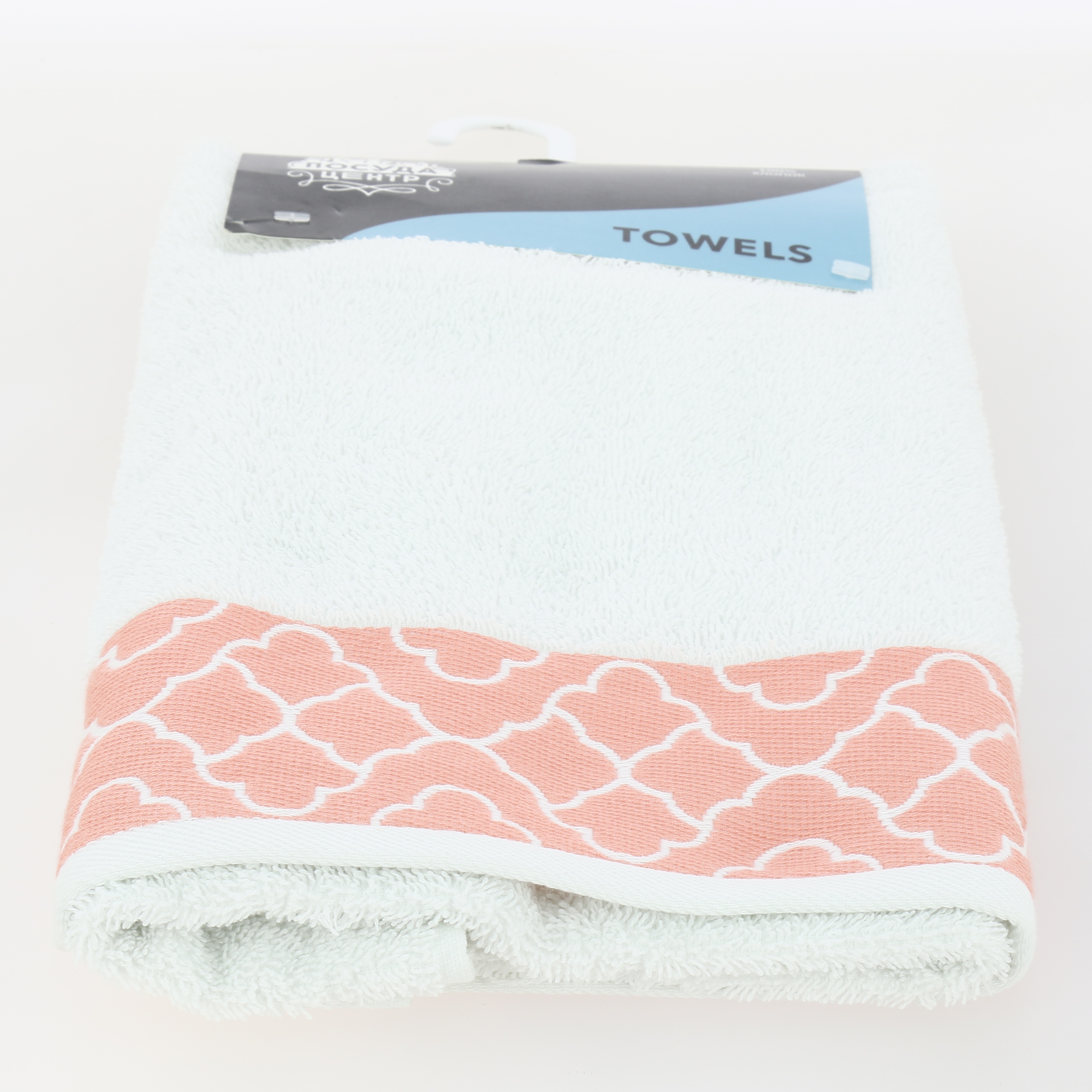 Полотенце 48х90см ПОСУДА ЦЕНТР махровое белый/персик хлопок