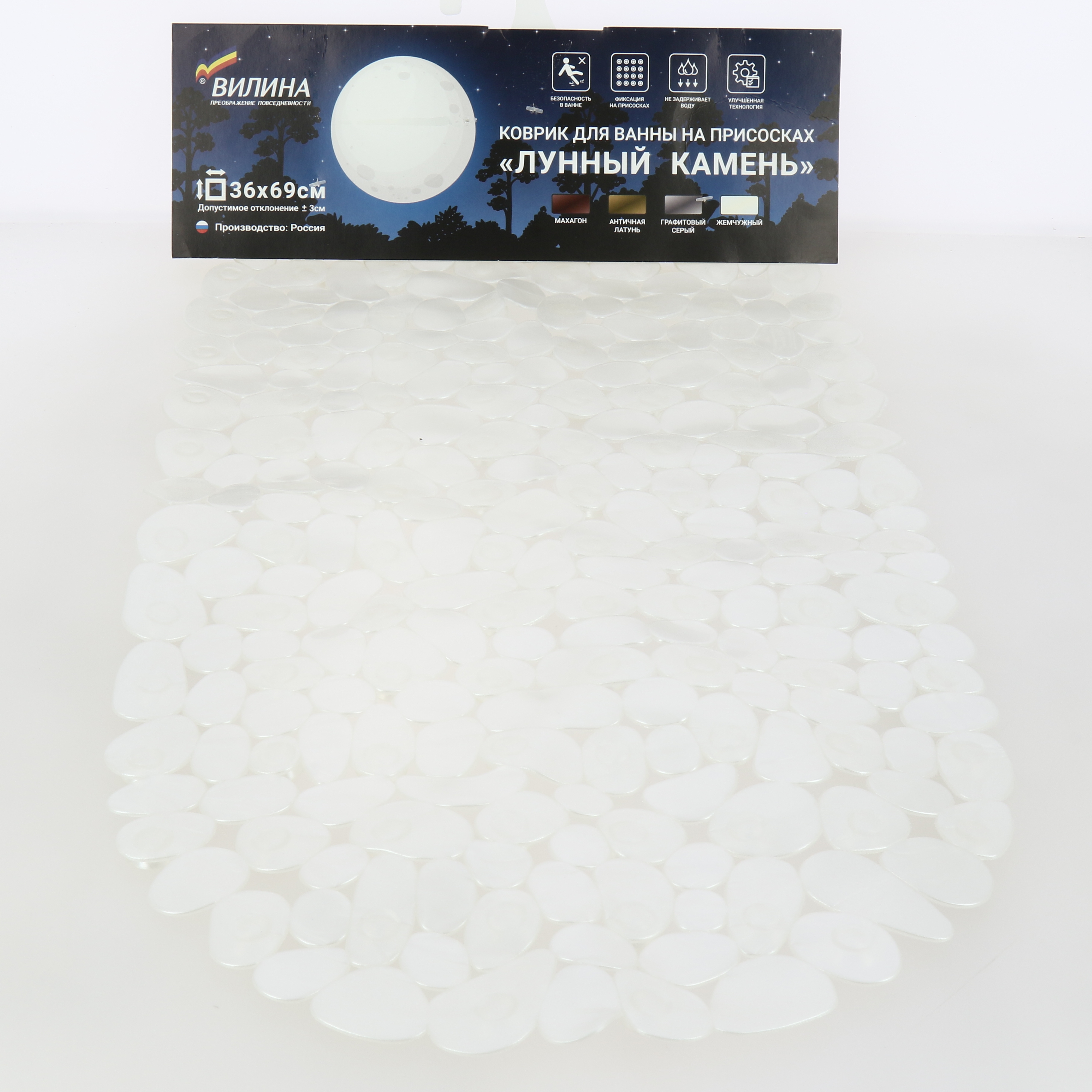 Коврик для ванны 36х69см ВИЛИНА Лунный камень. Чередующиеся гладкие и рельефные элементы создают имитацию природных материалов. Литой ПВХ