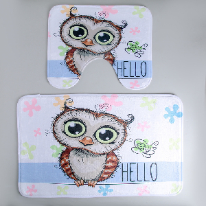 Набор ковриков для ванны и туалета 2шт 39х50см 50х77см ДОЛЯНА Совушки парочка флис