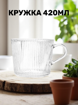 -Кружка 420мл FORA Грани прозрачная стекло