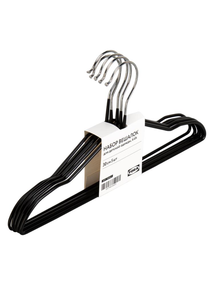 Набор вешалок детской одежды 5шт 30см FORA kids черный металл с ПВХ покрытием