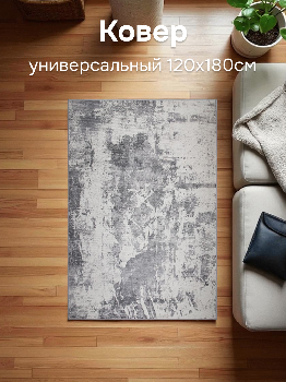 Ковер универсальный 120х180см LUCKY СОСТАРЕННЫЙ серо-белый хрустальный бархат