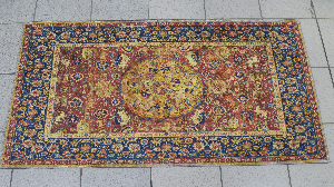 Коврик выполнен в стиле старого советского ковра. Материал изделия синтетика, короткий ворс. Края аккуратно обработаны.Прорезиненная основа предотвращает его скольжение по гладкой поверхности и обеспечивает надежную фиксацию. Такой коврик надежно защитит помещение от уличной пыли и грязи. . Коврик можно положить в ванную комнату, в туалет, в спальню, на кухню.