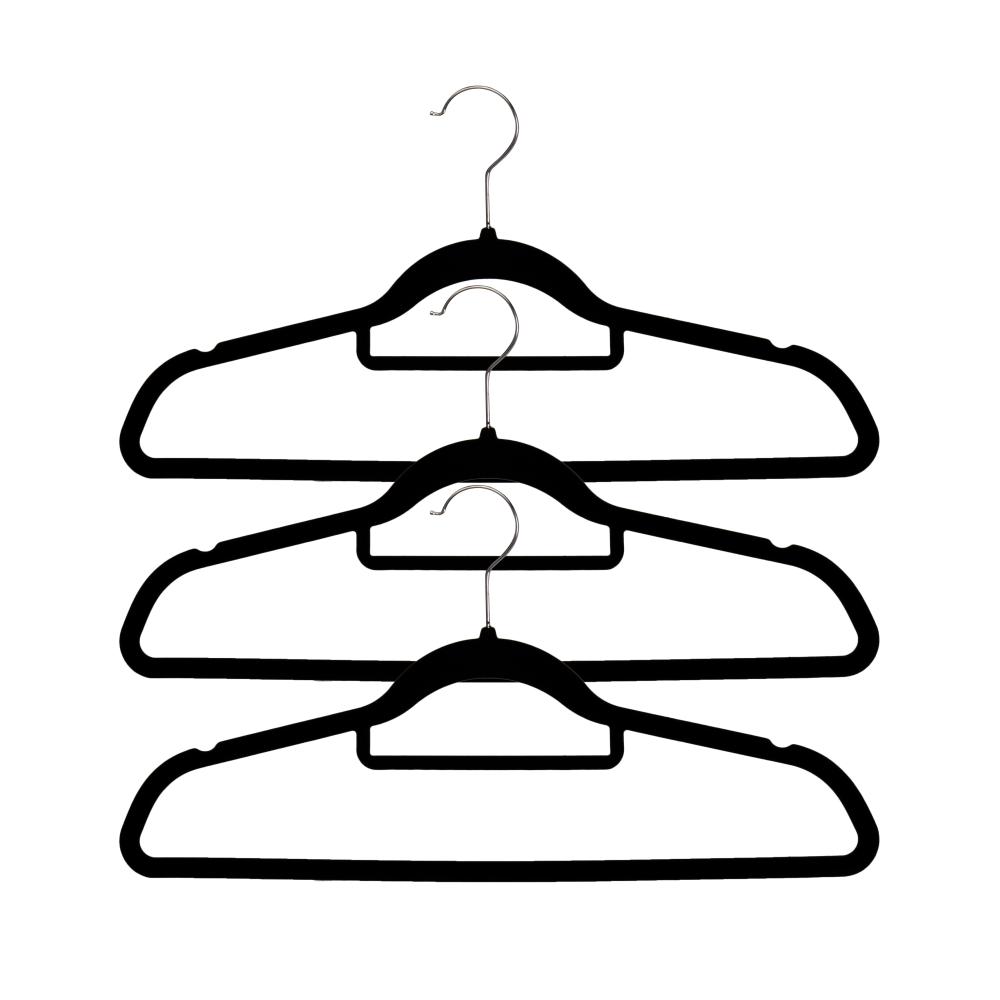 Набор вешалок 3шт 44,5см ПОСУДА ЦЕНТР хромированный крючок черный флок