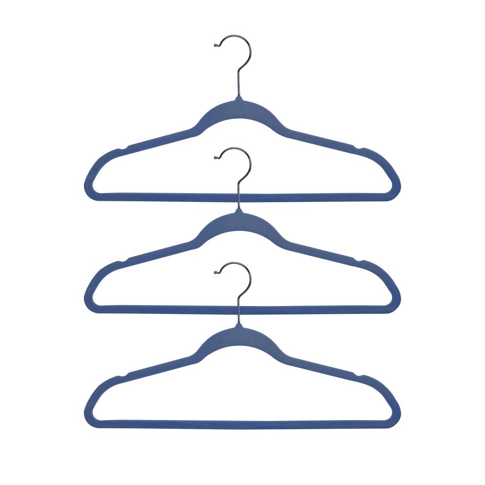 Набор вешалок 3шт 44,5см ПОСУДА ЦЕНТР хромированный крючок синий флок