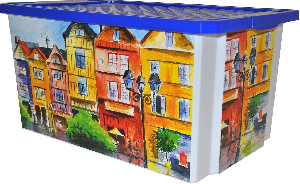 Универсальный ящик для хранения, декорированный с помощью технологии In Mould Labeling (IML). Теперь наш ящик привлекательный элемент интерьера, а не просто функциональное изделие. Декор ящика износоустойчив, его можно мыть без опасения испортить рисунок. Прочный каркас ящика позволит хранить как легкие вещи, так и более тяжелый груз.