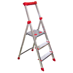 Стремянка, 3 ступени, алюминий. Это лёгкая и практичная стремянка предназначена для бытового использования. Стремянка имеет 3 ступени, ее вес 3,5 кг. Она изготовлена из усиленного алюминиевого профиля. Благодаря безопасной площадке со встроенными вставками противоскольжения, высокой эргономичной дуге безопасности, со встроенным лотком для инвентаря и отделением для инструментов, стремянка проста и удобна в обращении. Ступени имеют ширину 82 мм, обеспечивают удобство и безопасность подъема и спу"ска. Максимальная нагрузка- 150 кг. Высота до платформы - 62 см, рабочая высота - 2,82м (из расчёта роста человека с вытянутой рукой 220 см)."
