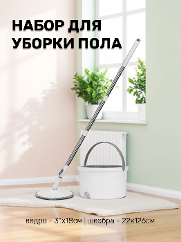 Набор для уборки пола 2 предмета (ведро круглое 31х18см+швабра с насадкой круглая 22х126см) LUCKY белый пластик/металл/микрофибра