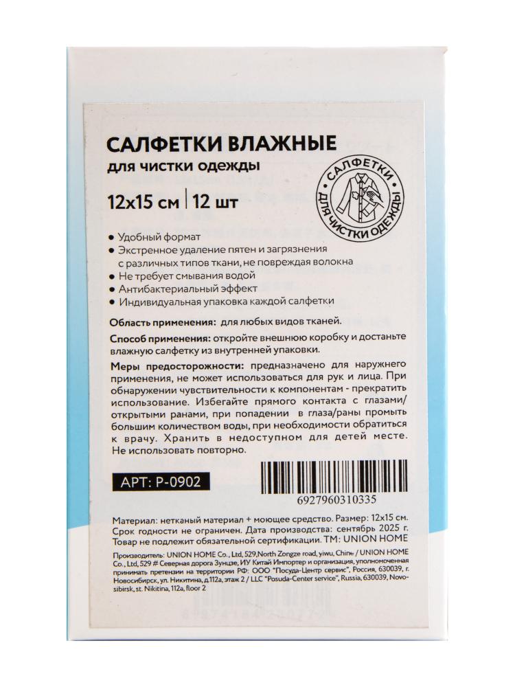 Салфетки 12х15см влажные для чистки одежды 12шт