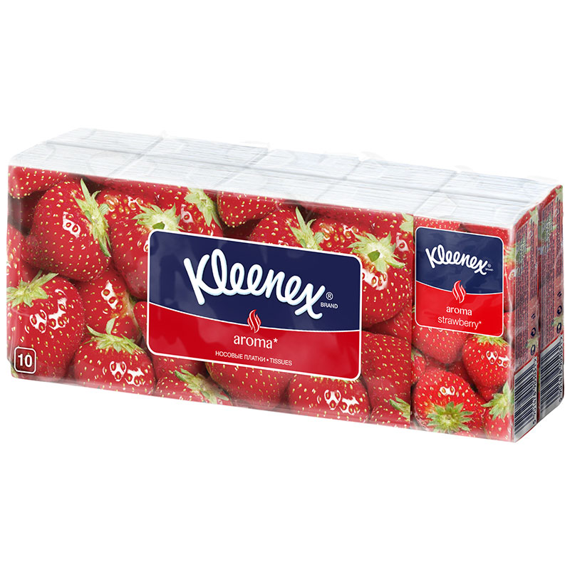 Носовые платочки Клубника Cleanex, бумажные, 10 шт.