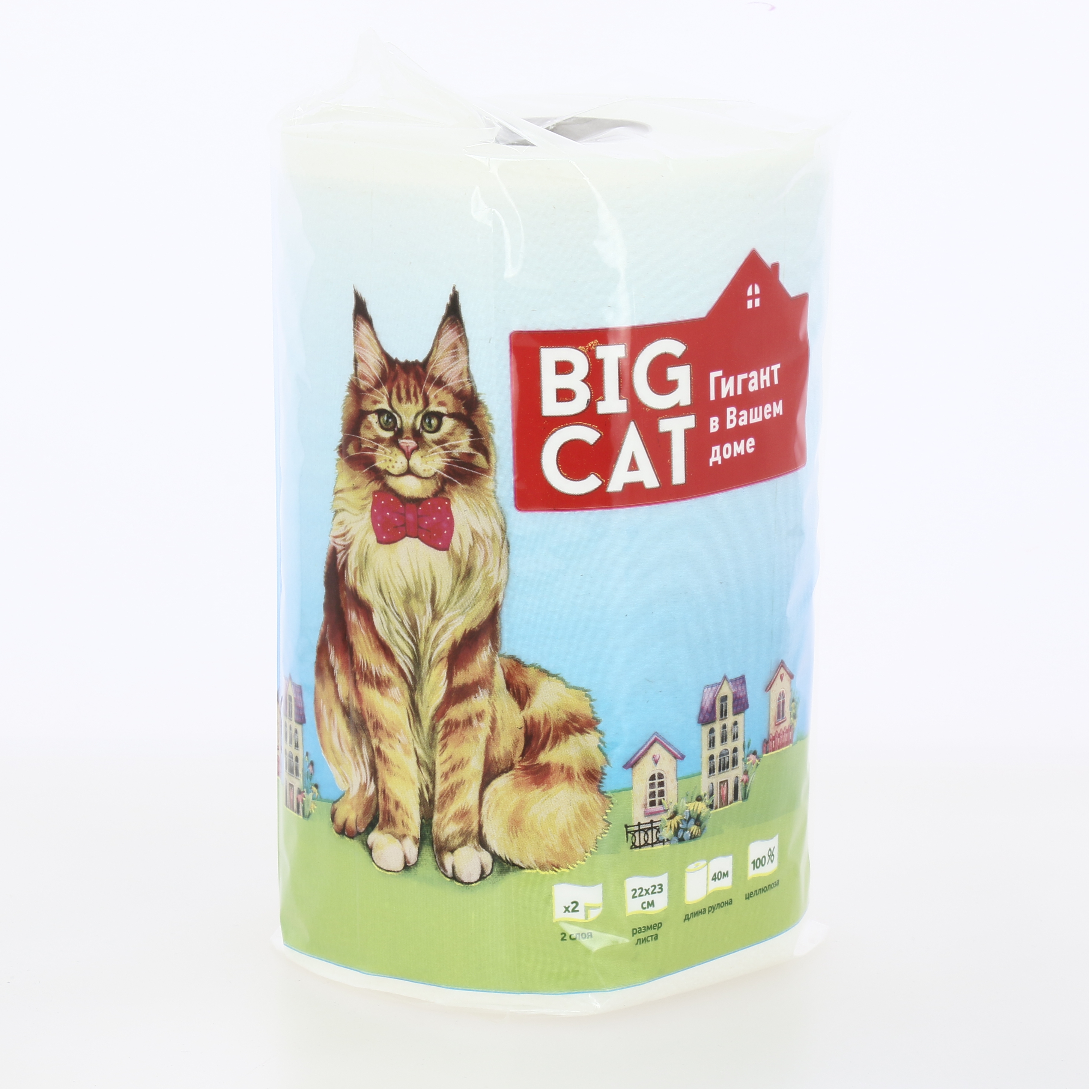 Полотенце бумажное 1 рулон 40м 2 слоя НОВАЯ ЛИНИЯ Большой кот Белое первичная целлюлоза