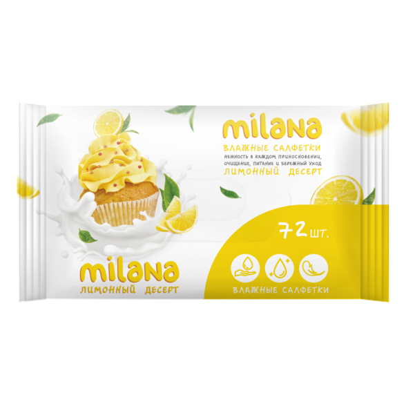 Салфетки влажные 72шт Milana Лимонный десерт антибактериальные