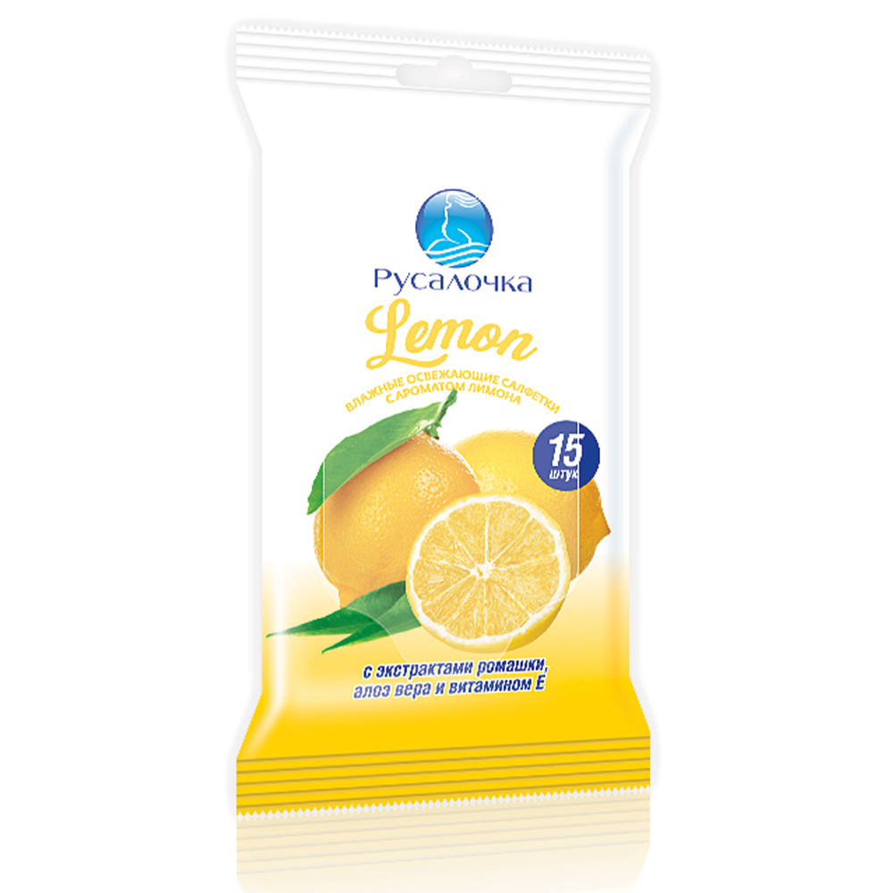 Влажные салфетки 15шт РУСАЛОЧКА освежающие с ароматом лимона